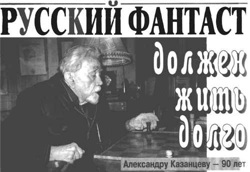 И в самом деле, знаменитому писателю-фантасту (и не менее знаменитому шахматному композитору!) Александру Казанцеву стукнуло 90. С чем мы все, читатели "Пылающего острова" и пр., и пр., его и поздравляем. Поскольку интервьюер никак не рассчитывает прожить на свете столько лет, то первым делом он поинтересовался у Александра Петровича, что чувствует человек в таком солидном возрасте.