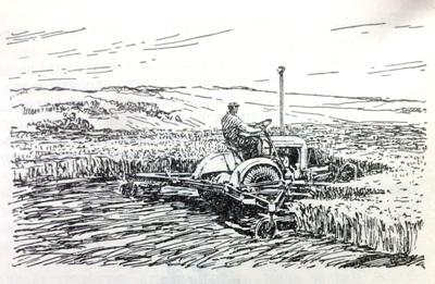 По той самой дороге, по которой ехал Левин на покос, почти беззвучно двигается странная, на первый взгляд, машина. Она не прицеплена ни к трактору, ни к грузовику, она едет сама собой. Пожалуй, она похожа на гигантского кузнечика со сложенными крыльями.