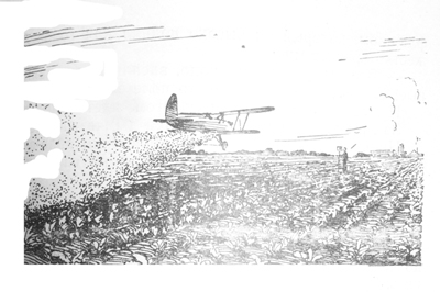 Самолет за день может опрыскать ядами двести восемьдесят гектаров, в то время как тракторный опрыскиватель, не говоря уже о конном, не обработает в день больше тридцати шести гектаров.