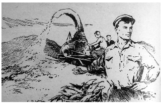 На этот раз мы беседуем с моими друзьями-целинниками в палатке. Землянки остались памятью о пороге в новую жизнь. На вертикальной подпорке висит план будущего селения. Его уже начинают строить. Вот здесь будет клуб. Но пока что кинокартины показывают на вольном воздухе. Погода хорошая. Климат здесь чудесный. Лето — так лето. Жара! Зима — так зима... Но сейчас разговор о другом, о том главном, ради чего пришли по зову партии все эти молодые люди на целину. Многие из них кончили десятилетку, они любят Пушкина, декламируют Шекспира и Маяковского, спорят обо всем на свете, зачитываются научной фантастикой, представляют себе сущность атомного взрыва, могут собрать радиоприемник. Но отныне они возделывают землю, кормят страну!