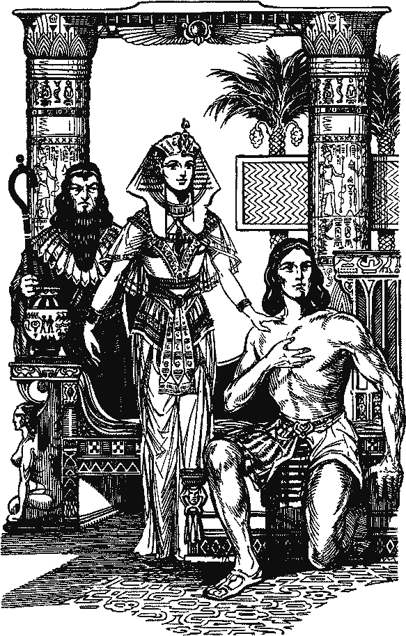 Глава третья.ИЗБРАННИК ПРЕКРАСНЕЙШЕЙКогда жрецы с бритыми головами без париков ввели черноволосого юношу в зал Стены, его охватила дрожь. На гранитной плите грозной преградой перед ним вставала надпись. Он познавал жуткий смысл иероглифов, и колени его подгибались. Если бы Прекраснейшая знала, на что он обречен! Своей божественной властью она спасла бы его, отвратила бы от него неизбежную гибель, уготованную бессовестными жрецами, так обманувшими ее!.. "Сквозь стену колодца Лотоса прошли многие, но немногие стали жрецами бога Ра. Думай. Цени свою жизнь. Так советуют тебе жрецы Ра". Совет жрецов! Совет нечестивости! Удар копьем в спину, а не совет! Если бы знала Прекраснейшая о существовании зала Стены, о колодце Лотоса, об этой надписи и неизбежной теперь судьбе ее юного друга, которого через три тысячи ударов сердца заживо замуруют в каменном колодце Смерти! Юноша тупо смотрел, как жрецы вынимали из стены тяжелые камни, чтобы потом, когда он "пройдет сквозь стену", водворить их на место, отрезав его от всего мира, оставив без еды и питья в каменном мешке его, живого, сильного, ловкого, которого любила сама Прекраснейшая, подняв его из пыли, когда он целовал следы ее ног! Могла ли подумать живая богиня, что жрецы Амона-Ра предадут ее? Нe они ли по воле ее отца, Тутмоса I, после кончины се супруга и брата Тутмоса II возложили на голову Прекраснейшей бело-красные короны страны Кемпт? Не они ли присвоили ей мужское имя "Видящего истину Солнца" - "Маат-ка-Ра", которое не смел произнести вслух ни один смертный? И не они ли отвергли притязания на престол юного мужа ее дочери, которая при жизни матери не могла наследовать фараонову власть и передавать ее супругу? И не жрецы ли Амона-Ра объявили святотатством богослужение жрецов Тота-Носатого, провозгласивших самозванца фараоном Тутмосом III? И вот теперь... Ужель жрецы Амона-Ра устрашились женской любви Божественной к низкорожденному, поднятому ею из праха, в котором надлежало лежать, распластавшись на земле, каждому неджесу или роме, свободному или коренному жителю страны Та-Кем? О чем можно передумать за три тысячи ударов сердца? Какие картины короткой своей жизни снова увидеть? Дом родителей, простых нечиновных роме на берегу царицы рек Хапи. Ночи на плоской кровле с любимой звездой Сотис на черном небе, по которой жрецы предсказывают наводнение. Пыль окраин Белой Стены (Мемфиса), где только улицы перед дворцами и храмами были залиты вавилонской смолой, чтобы глушила стук копыт и шум колес. Тайная дружба с детьми домашних рабов, в рабы в каменоломнях, измученные, безучастно-терпеливые к побоям и окрикам надсмотрщиков. Детские игры с щенком гиены в каменоломне предков, из которой уже взяли весь ценный камень. Уединение в заброшенном каменном карьере, где он, еще мальчишка, пробовал высечь голову прекрасной женщины. Она жила в его незрелой мечте. И когда уже юным атлетом, способным перегнать быстрейшего из эфиопских скороходов, что бегут впереди колесницы властителя, побороть сильнейшего из его стражей или соперничать с ваятелем любого храма, он увидел ее, Прекраснейшую, узнав в ней свою Мечту. Она снизошла до того, чтобы посмотреть состязания юношей, и отметила его среди победителей. Он лежал в пыли у ее ног и надеялся поцеловать след ноги несравненной, изваять которую достоин лишь лучший из оживляющ