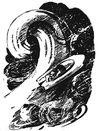 Первым беду почувствовал Добров. Насосы, создавшие под вездеходом воздушную подушку, стали засасывать не воздух, а воду... Подушка исчезла, и вездеход плюхнулся на пенный гребень, уподобившись простой лодке.