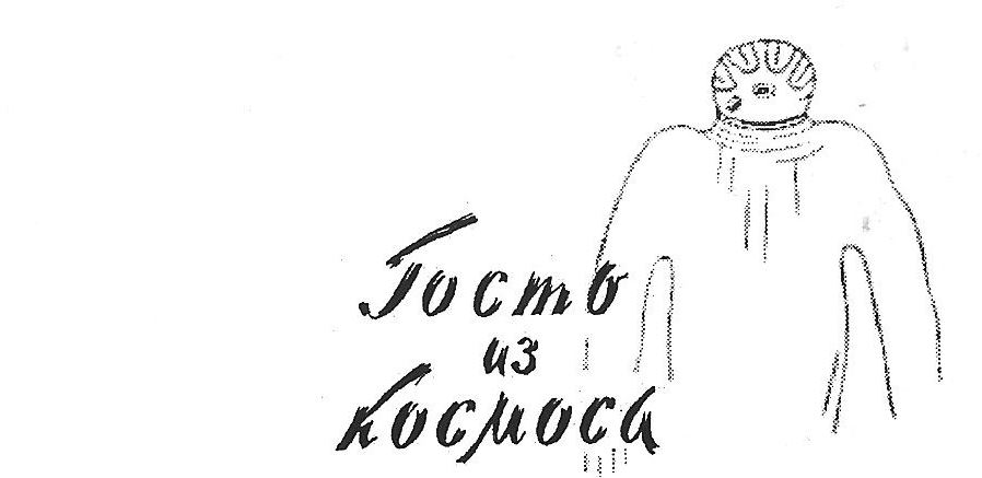 ...Внутренность кабины, наполненной странными, прямоугольными шкалами приборов. Ни одного круглого циферблата. Космонавт в скафандре снимает шлем. Он похож на человека, он — почти человек! Лицо с мужественными строгими чертами, удлиненные очки подчеркивают незнакомый разрез глаз. Высокий лоб переходит в лишенный волос череп, форма ушей необычна. Он опускается в прозрачное кресло и в отчаянии сжимает голову руками. Появляется другой космонавт. У него такого же типа лицо, испещренное морщинами. Старик властно кладет руку на плечо первого. Тот вздрагивает и оборачивается.