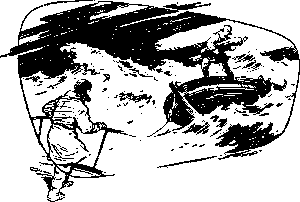 Моряки ухватились за буксирный трос и с трудом стали тянуть его. Скоро из мглы показалась пляшущая тень. Это был кунгас. На носу его виднелась фигура человека.