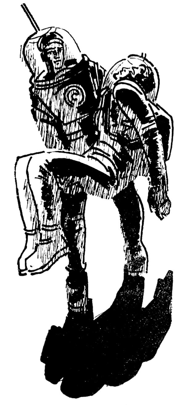 И Том Годвин бежал. Рука его болталась плетью. Перекинутое через левое плечо тело командора казалось жестким. Том Годвин не знал, что смертельные огненные капли еще в нескольких о местах прожгли скафандр Громова и космический холод ворвался под защитную одежду. Тело его стало негнущимся...