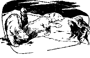 Со своей проводницей я подошел поближе к Машке. Но стая лохматых псов опередила нас. Отчаянно лая, они окружили медвежонка. Машка опустила голову к земле и замахивалась лапой то на одного, то на другого пса. Те увертывались, а остальные отвлекали Машку на себя. Все было, как на настоящей медвежьей охоте.