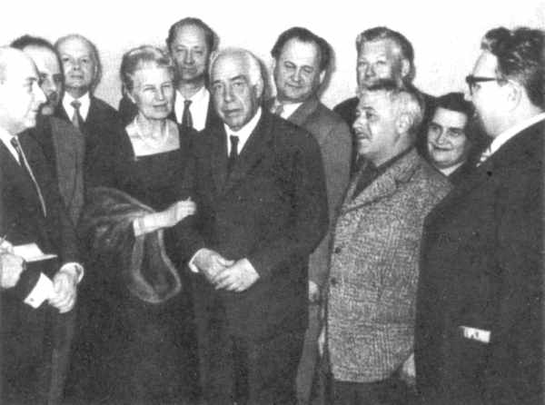 A photograph lies before me. It shows a group of writers, colleagues of mine in the profession. In the fore is the poet Semyon Kirsanov, in the back row are Leonid Sobolev, Georgi Tushkan and Boris Agapov. In front of me in the centre of the group is an elderly man and his wife. He has a tired face with a large mouth, high brow and keen, lively eyes.
