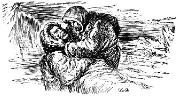 Однажды, едва люди отошли от трещины на несколько шагов, сани перевернулись, наехав на глыбу. Возились долго, пока не поставили их на полозья, снова потянули, но сани глубоко зарылись в снег. Повисшие на постромках путники не могли сдвинуть их с места.