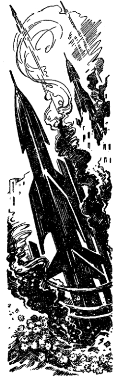 Волосы шевельнулись на голове Куция Мерка, Он уже знал, что не только здесь, а и в тысяче других мест континента, вот так же из глубинных шахт, из-под воды, где-нибудь, может быть, даже из зданий, вырываются страшные ракеты, чтобы смертоносной стаей нестись к Даньджабу.