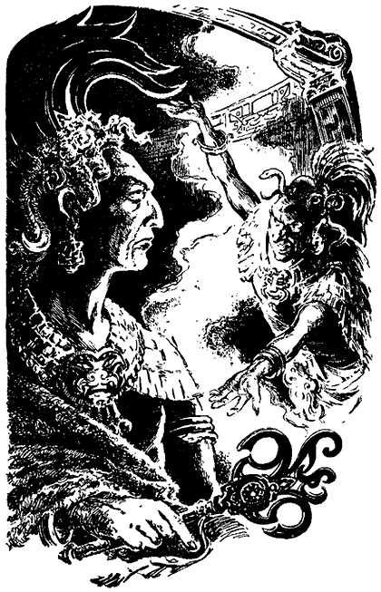 Гремучий Змей не обрадовался ночному визиту жреца, но был вынужден во всем парадном блеске выйти в освещенный факелами зал, устланный коврами из птичьих перьев. Он сел в желтое кресло, металл которого в отличие от камня никогда не тускнел, как и слава Гремучего Змея.