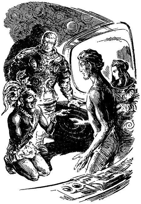 Они с Карой Яр натолкнулись на земянина, и Нот Кри сдержался от первоначального намерения заполучить «экземпляр разумного» с помощью парализующего оружия. Да это и не понадобилось! Земянин страшно испугался чудовищ, какими мы должны были ему представиться. Оказывается, он видел из зарослей, как мы спустились на огненном хвосте в своей чаше с неба и вышли потом из огня и дыма. Вид наш превосходил даже изощренное воображение жрецов, рисовавших для устрашения народа своих богов.