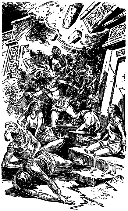 Тиу Хаунак, сооружая Ворота Солнца, хотел, чтобы они устояли при любых землетрясениях, оставшись стоять навеки. Но у нас на глазах огромный поперечный монолит треснул. Трещина прошла через все письмена, разделив их на две неравные части. Чудовищная каменная глыба должна была свалиться на Иву и Гиго.