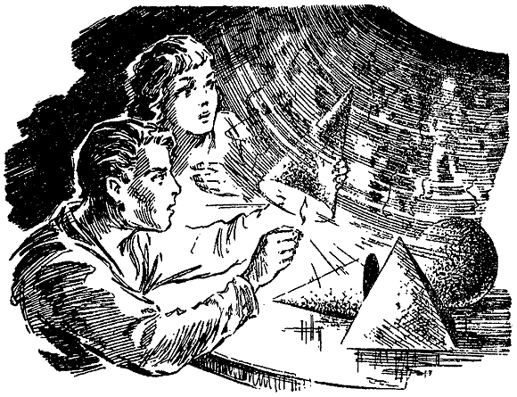На самом деле «заговорил» аппарат из кубов и конусов. Звук становился все отчетливее, ритмично повторяясь, а на стороне куба все отчетливее становилось изображение… человека! И тут в лабораторию, задыхаясь от гнева и бега, ворвались Галактион Александрович и Эльга Сергеевна.