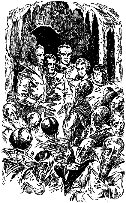 И Старый Жрец не устает напоминать, что еще Великий Старец (их главный бог!) первым наложил запрет на опасные знания. Затем его великий пророк Мать Мона запретила полеты в космос к Земле, населенной чудовищами, которые вырывают друг у друга сердца и стремятся в своей свирепой жестокости к захвату чужих стран, к порабощению или уничтожению народов. И эти демоны непременно прилетят на Map, чтобы разделаться с марианами. У мариан одно средство спасения: уйти навек в глубинные убежища и никогда не появляться на поверхности. Вот почему уже тысячи циклов в пустынях Мара не осталось никаких следов мариан, все оазисы засыпаны песком, великое орошение заброшено, мариане питаются только тем, что можно получить в недрах.