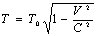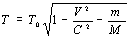 то при умножении на λ всей формулы она теряет смысл, а при умножении под корнем отношения квадратов скоростей подкоренная величина превращается в единицу и Т = Т0 , что следует из теории абсолютности. Однако при введении коэффициента отношения масс под корень слагаемых со знаком минус формула обретает вид: