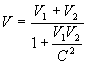 Когда же α=β=1, то есть V1=V2=C при γ=0, получается классическая формула релятивистской физики: